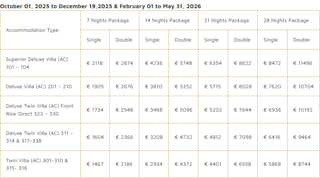 - Full Board Ayurveda Vegetarian Cuisine.